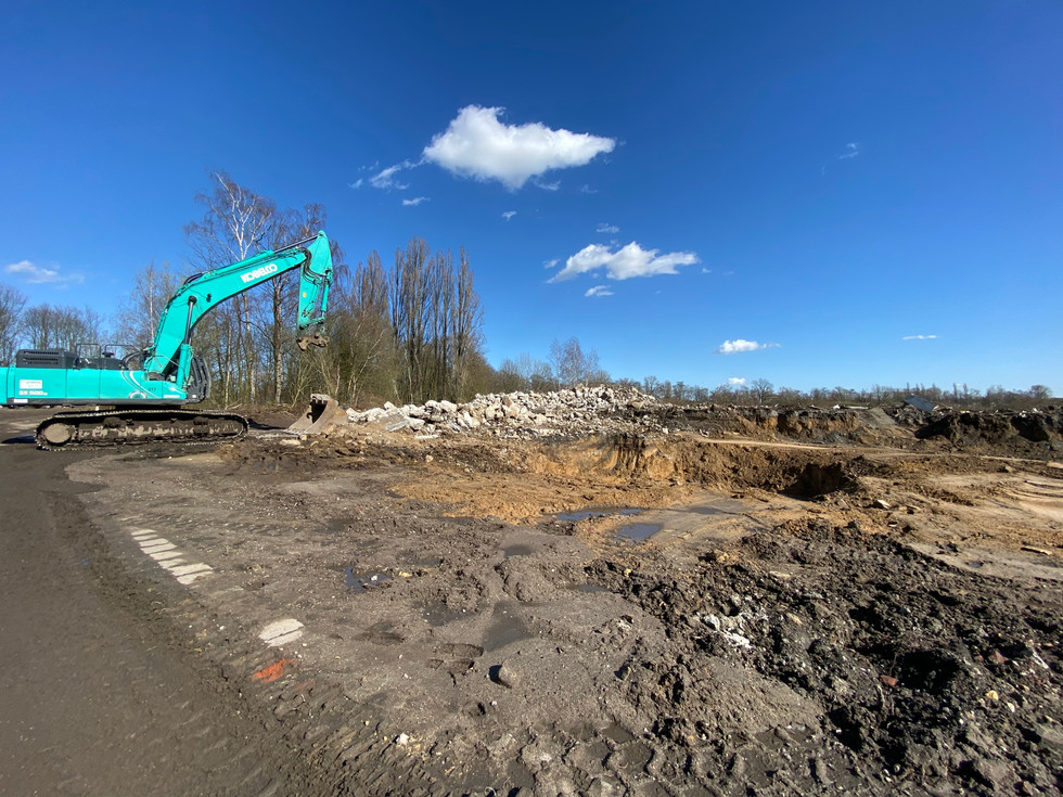 Der Rückbau des alten Tribünengebäudes im nördlichen Bereich der Trabrennbahn konnte Anfang des Monats gestartet werden. Zuvor war im Rahmen der Ökologischen Baubegleitung durch das Büro Landschaft + Siedlung aus Recklinghausen ein Fledermausvorkommen in einem Türsturz im Obergeschoss des Gebäudes festgestellt worden. Nachdem die vorgenommenen Vergrämungsmaßnahmen nicht die erhoffte Wirkung erzielten, mussten die Tiere schließlich von Hand geborgen werden, um den Rückbau zu ermöglichen.
